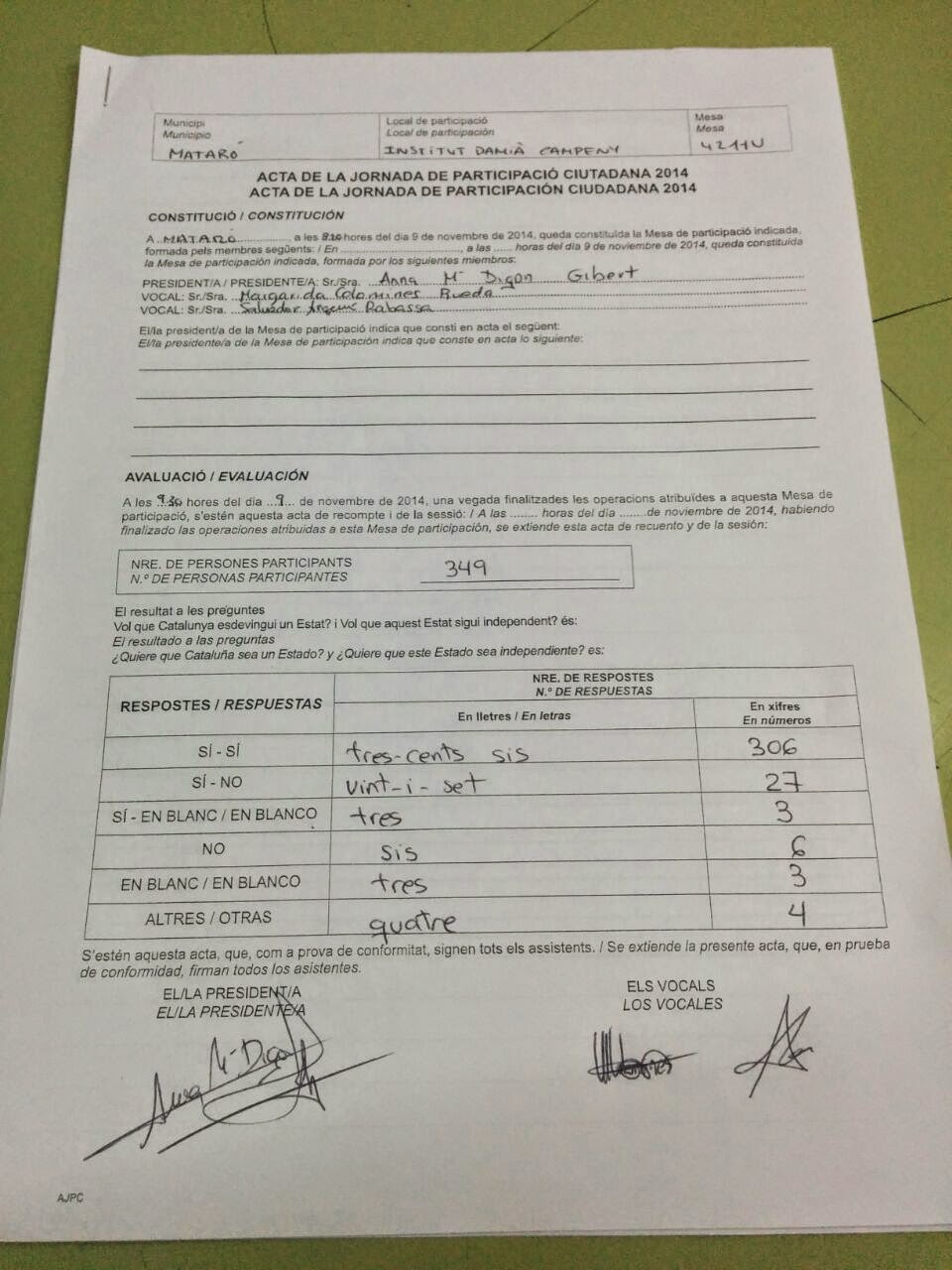 - Els resultats de la votació del 9 de novembre de 2014: 2.344.828 votants.