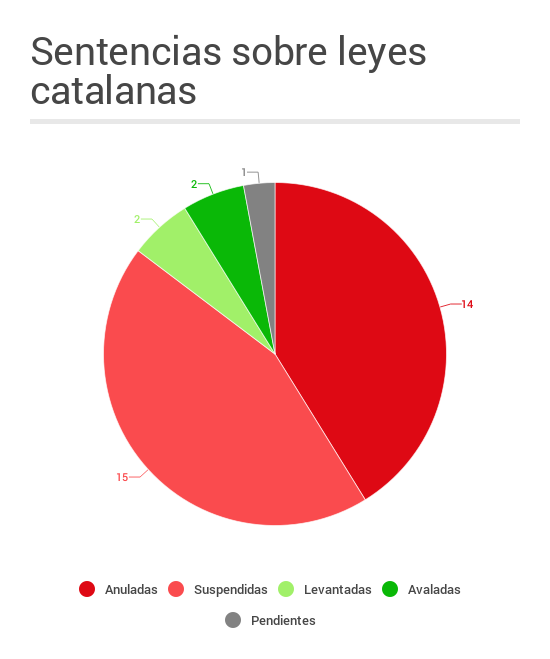 15, Suspensió aixecada: 2, Favorable a Catalunya: 2, Pendents de resolució: 1